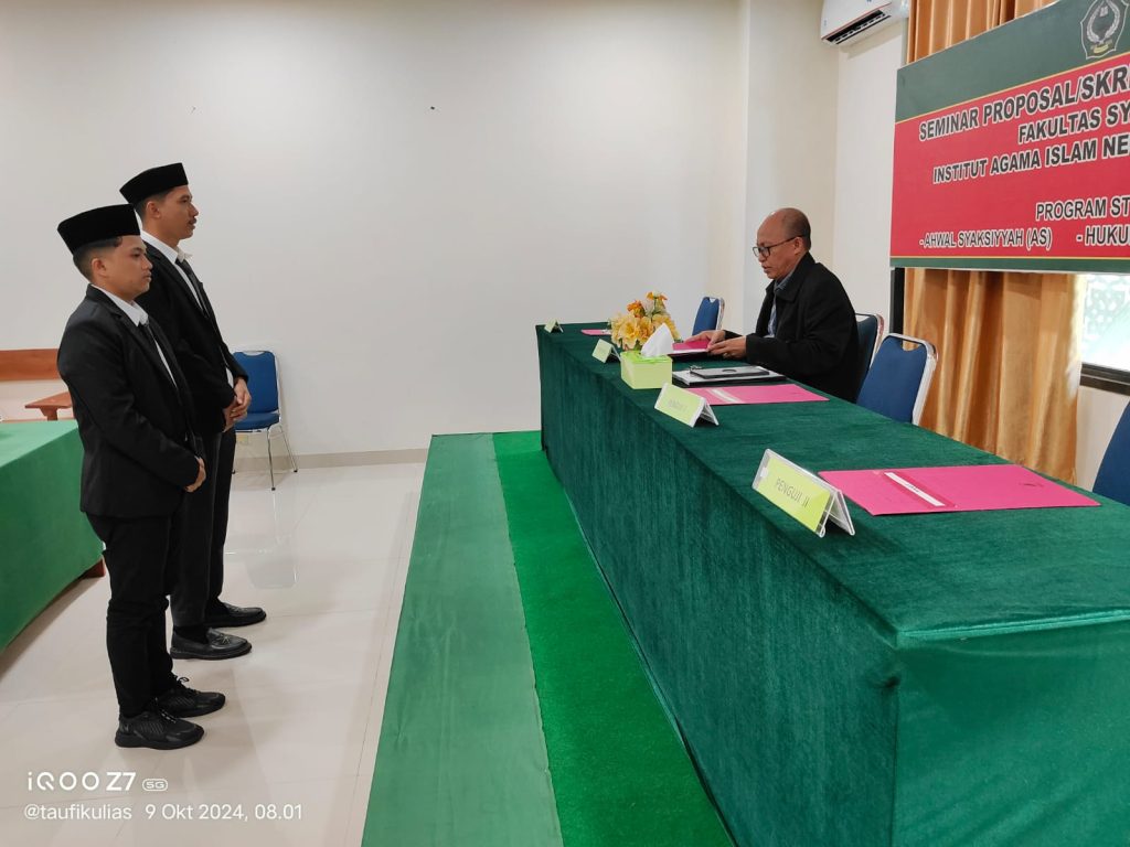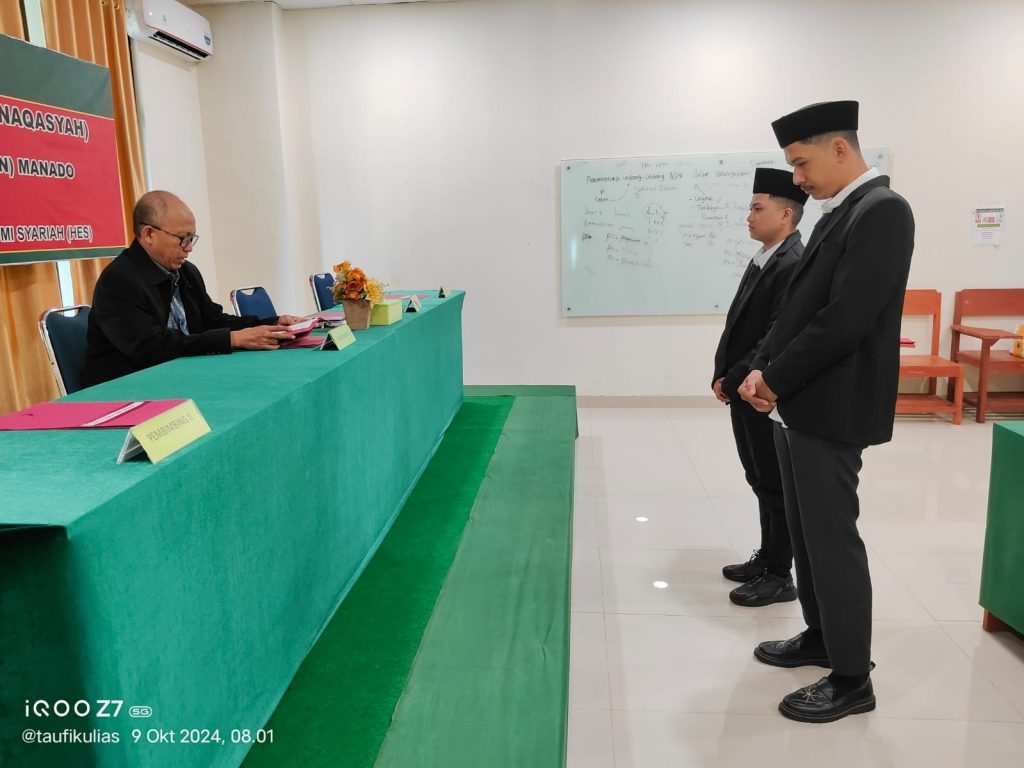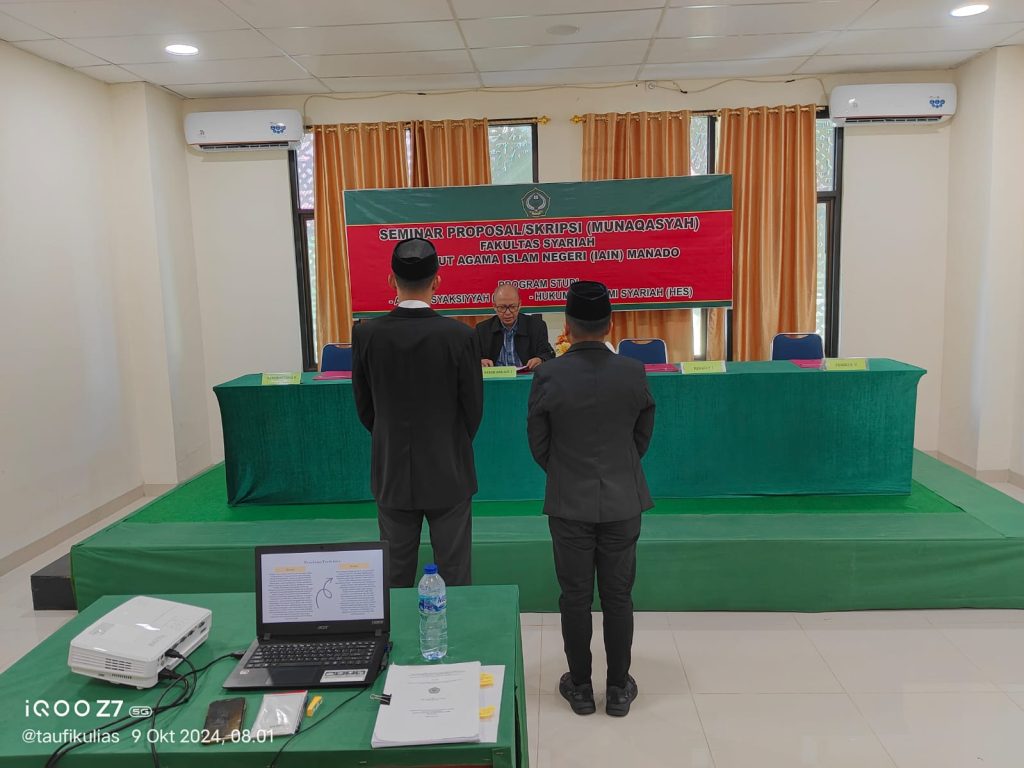 Fakultas Syariah – Wakil Dekan I Fakultas Syariah IAIN Manado, Dr. Muliadi Nur, M.H., secara resmi membuka Ujian Munaqasyah/Skripsi untuk Program Studi Hukum Ekonomi Syariah. Kegiatan ini dilaksanakan pada hari Rabu, 9 Oktober 2024, bertempat di gedung lantai II Fakultas Syariah IAIN Manado.